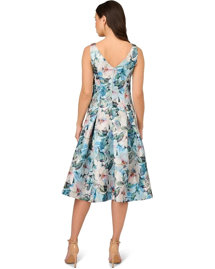 - Ideal for cocktail parties and events, flaunt your great style by wearing the Adrianna Papell® Floral Jacquard Midi Dress. The sleeveless design, V-neckline and back add to its style. Crafted from jacquard fabric, this printed dress offers superior comfort and style. The zippered back closure of the dress offers easy wear. Make a stylish entry into any party or event by wearing this flowy dress.