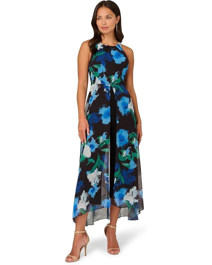 - Drape yourself in the tie-dye-inspired flowery enchantment of Adrianna Papell® Floral Print Jumpsuit Dress. The wide-leg chiffon jumpsuit features a halter neckline, chiffon overlay, sleeveless design, and zippered center back closure.