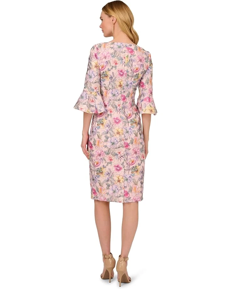 - Flaunt your feminine charm by styling the floral printed short dress from Adrianna Papell®. This dress features a square neck, a sheath silhouette, and a zippered closure for a flattering fit. The embroidery adds a delicate and refined touch to this lovely dress. With elbow sleeves and above-the-knee length, this dress is perfect for any season and occasion.