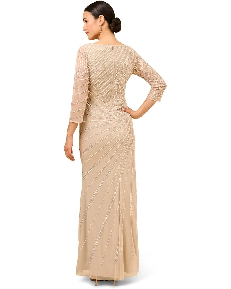 - Look gorgeous wearing the Adrianna Papell® Long Sleeve Beaded Long Gown with Starburst Bead Pattern. This dress is adorned with bead detailing all over.