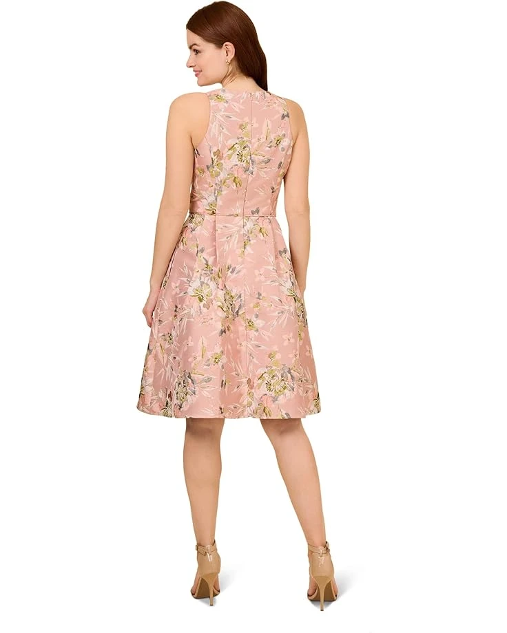 - Exude a feminine persona while acing the fashion trends, wearing the Adrianna Papell® Printed Metallic Jacquard Fit-and-Flare Dress.