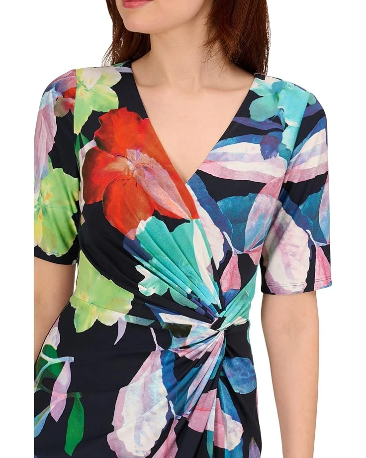 3 reviews for Adrianna Papell Printed Stretch Crepe Chiffon Short Sleeve Side Wrap Dress | Dresses