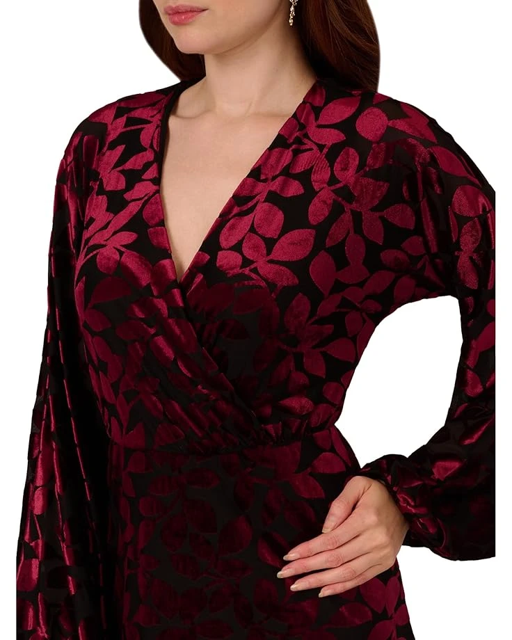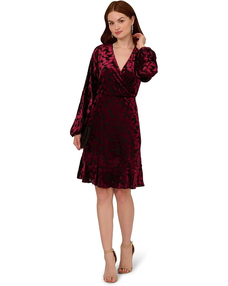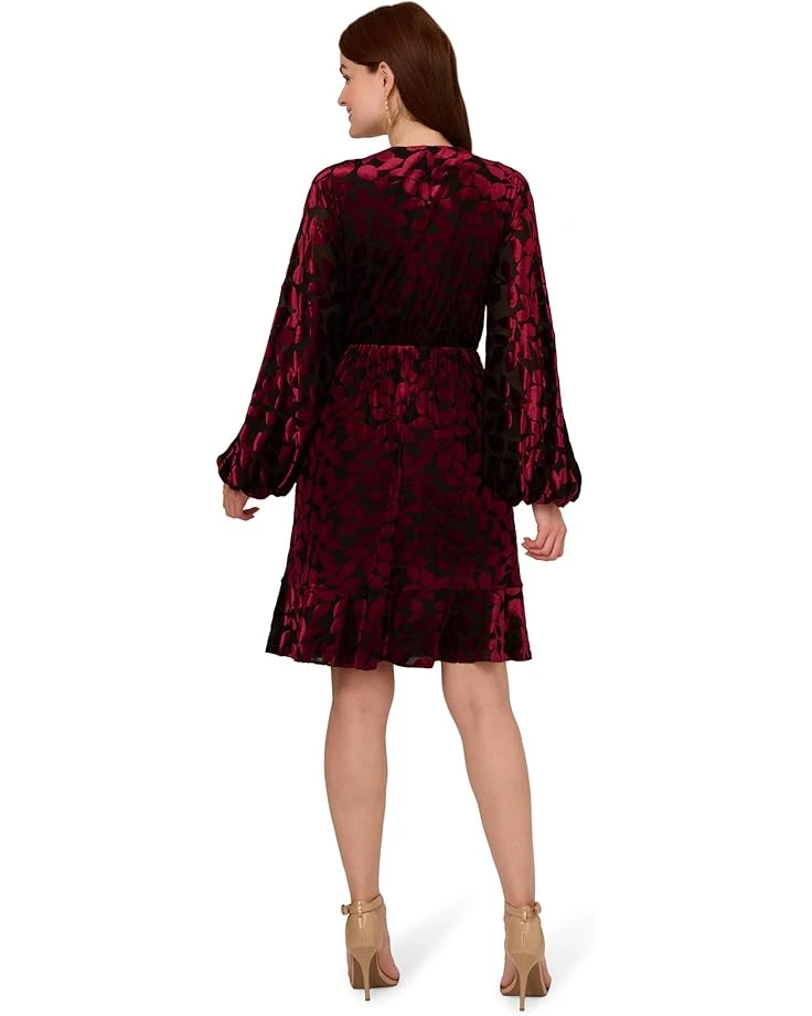 - Shimmering elegance in every step! Elevate your style with the Adrianna Papell® Velvet Burnout Short Dress, a luxe piece that shines for any occasion. Featuring a chic above-the-knee blouson silhouette and a flattering V-neck, this faux wrap dress boasts rich details like long bishop sleeves, a surplice bodice, and a soft flounce hem. Crafted from sumptuous burnout velvet with a floral-like design, it offers an elastic waist and a convenient pull-on style.