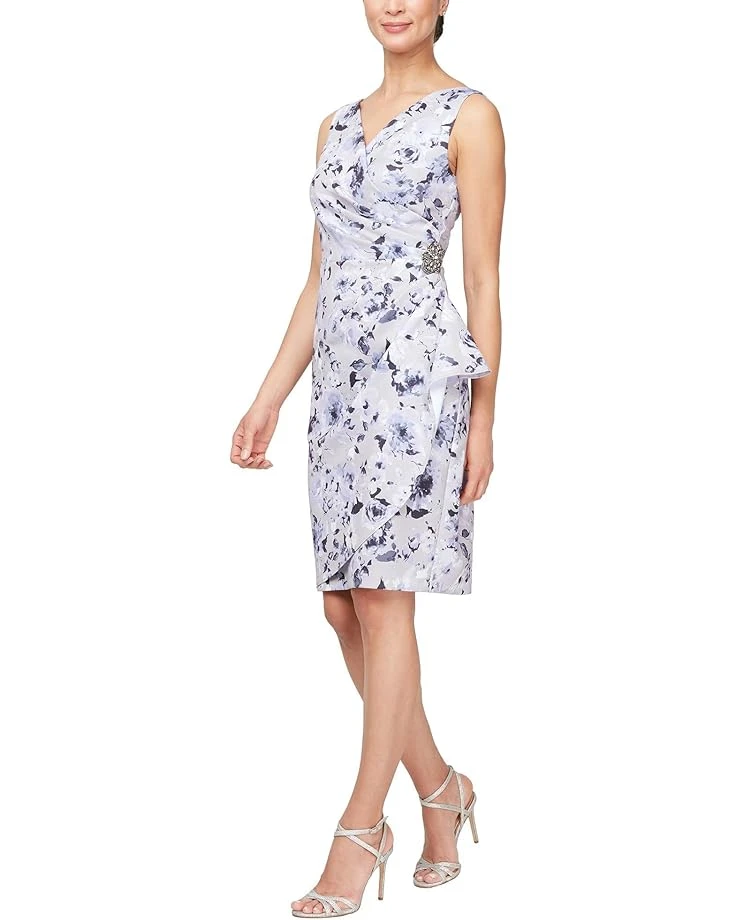 - Slay in your iconic dazzling look donning the Alex Eveningsâ„¢ Sleeveless Printed Dress. This above-knee-length dress features surplice V-neckline, sleeveless construction, and cascade ruffle detailing on the skirt.