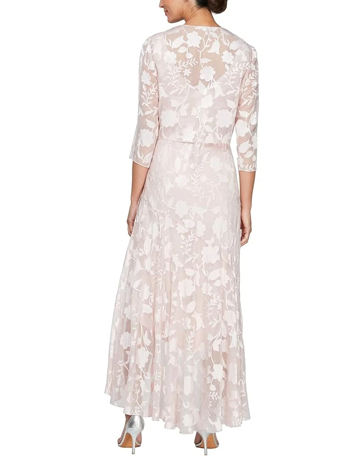 - Charm the crowd at any gathering wearing the Alex Evenings™ Tea Length Chiffon Burnout Dress.
