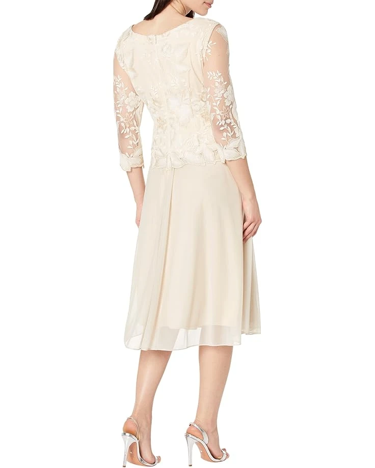 4 reviews for Alex Evenings Tea Length Embroidered Dress with Illusion Sleeve and Scallop Detail Full Skirt | Dresses