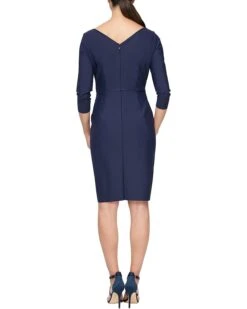 Alex Evenings Long Illusion 3/4” Sleeve Side Ruched Dress w/ Embellished Neckline | Dresses