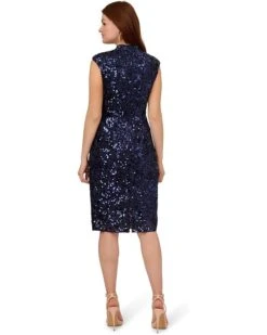 Alex Evenings Short Corded Lace Sheath Dress with Illusion Neckline and Bell Sleeves | Dresses