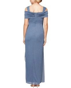 Alex Evenings Long Metallic Knit Off-the-Shoulder Dress w/Long Sleeves & Leg Slit | Dresses
